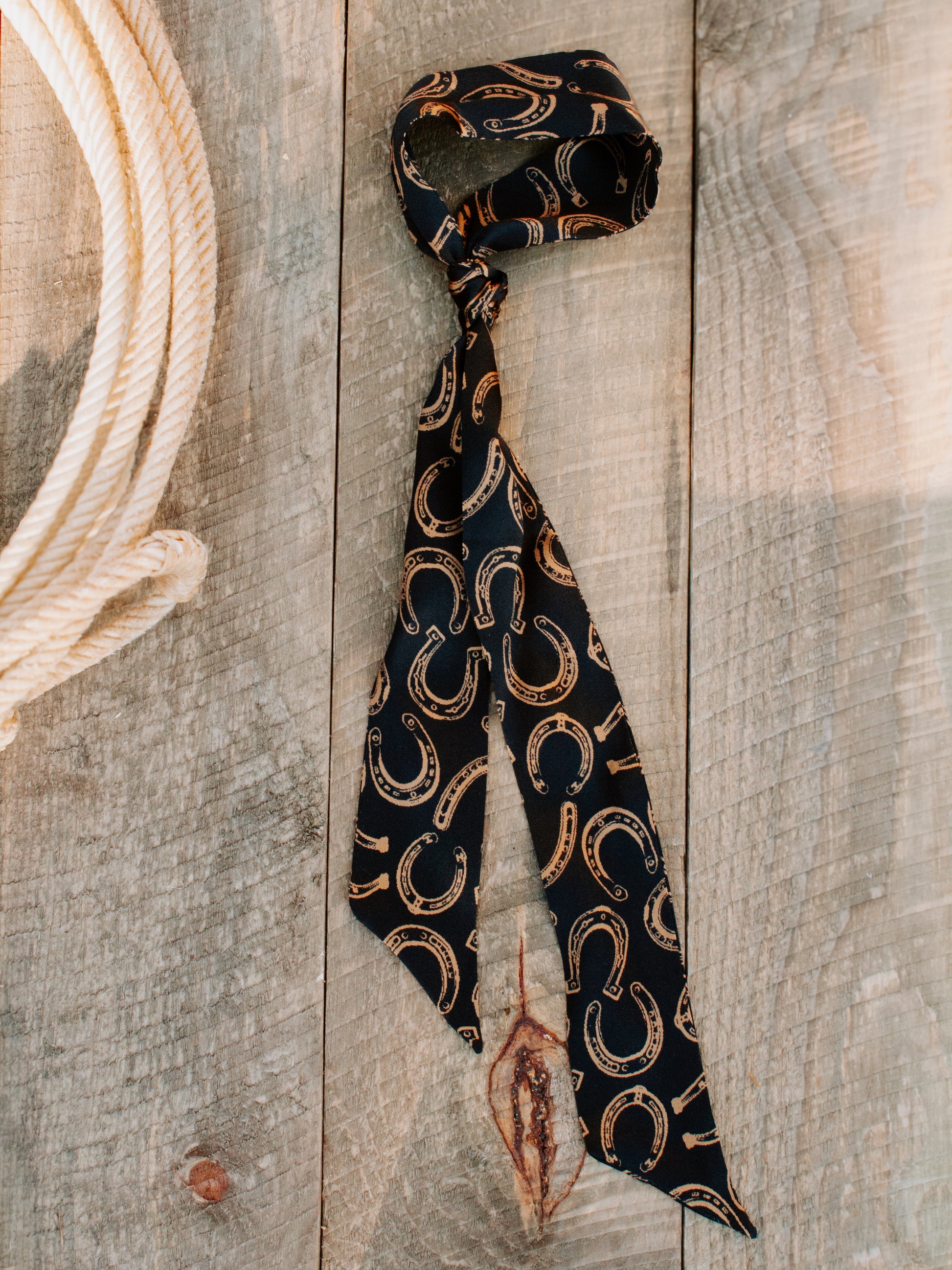 Add the perfect finishing touch to any cowgirl look with the Lucky Horseshoe Western Neck Scarf. Designed with a classic horseshoe print, this scarf brings timeless western charm with an effortless, modern feel.