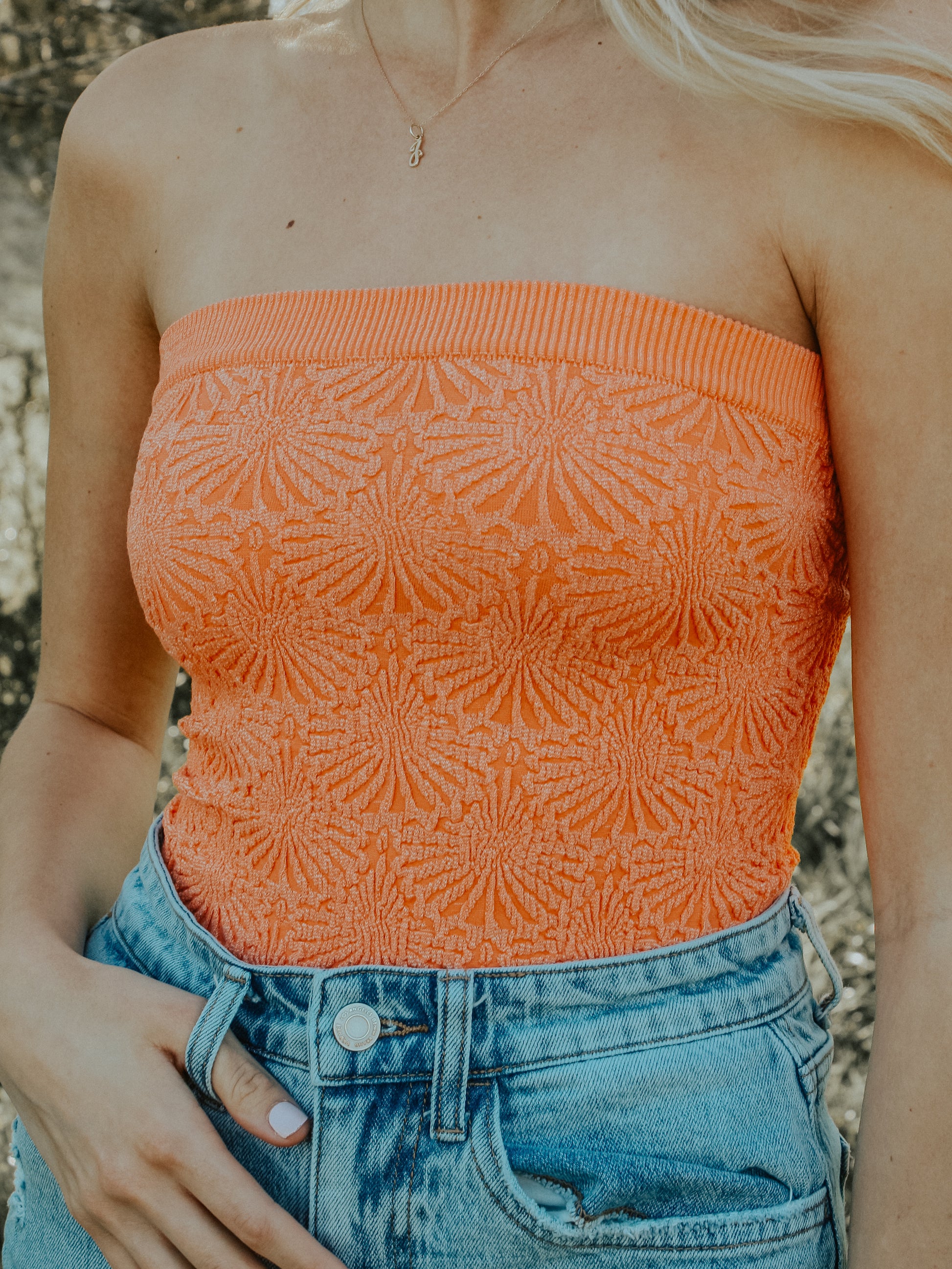 The Oklahoma Tube Top is the perfect spring time top. Featuring a seamless strapless design, it offers maximum comfort and a sleek look. Say goodbye to pesky straps and hello to effortless style with this must-have piece.